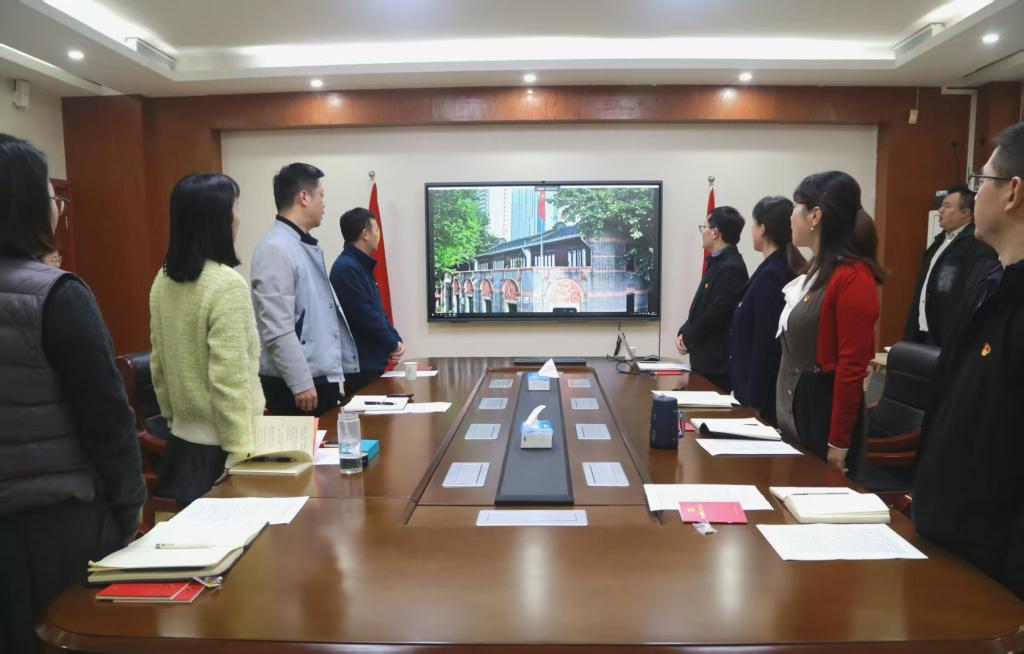 余丹丹同志通报了党员到会情况和党费收缴情况,带领全体党员奏唱国歌、重温入党誓词。秦少东同志带领全体党员诵读了《中国共产党章程》总纲部分第一至三段,引导党员同志进一步尊崇党章、遵守党章、维护党章,强化党员意识。