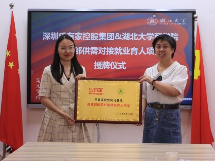 随后,乐有家控股集团人力发展中心总监杨敏和商学院党委副书记邵阡为教育部供需对接就业育人项目正式揭牌。本次授牌仪式的成功举行为双方后续的深入交流、资源共享、人才共育提供了坚实保障。未来,校企双方将充分发挥校企联合模式潜能,共同开创就业育人新篇章。