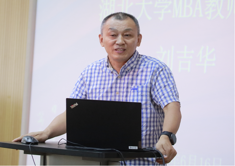 随后,湖北大学MBA教师代表刘吉华老师发言。刘老师对大家在校学习期间展现出的勤奋与努力给予了高度肯定,并鼓励毕业生们要保持终身学习的热情,不断汲取新知识、新技能。他也深情地表示,学院永远是毕业生们温暖的港湾,欢迎大家常回家看看。