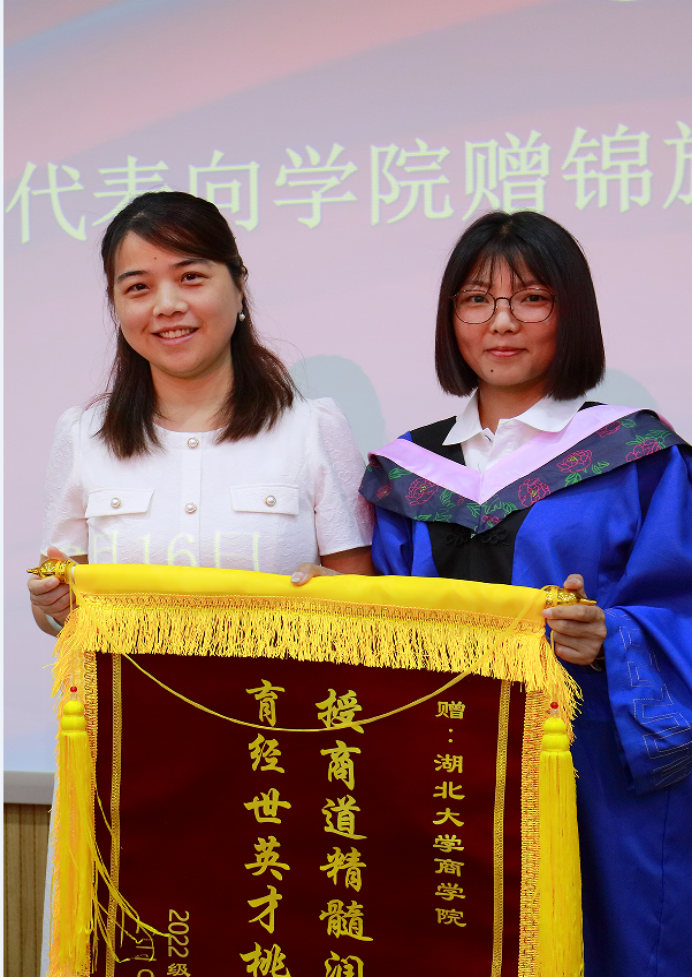 在热烈而持久的掌声中,毕业生代表向学院赠送了锦旗,“授商道精髓润物无声,育经世英才桃李天下”,表达了毕业生对开云app登录入口的眷念与感激。