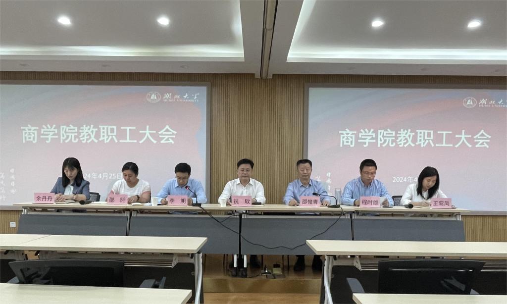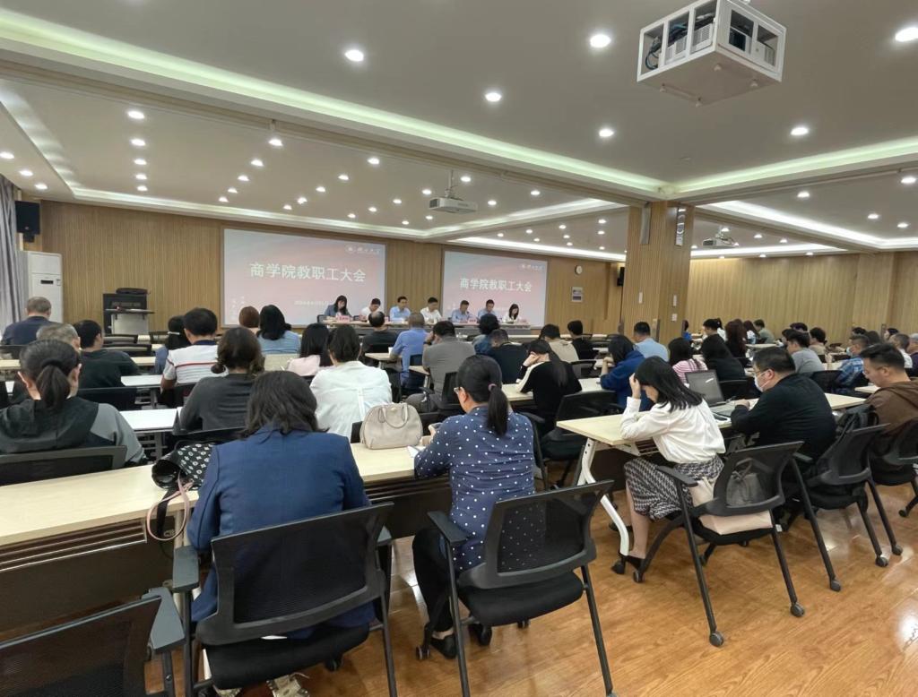 4月25日下午,商学院在逸夫楼C2014报告厅召开全院教职工大会,宣布学院院长任命决定。校党委副书记祝欣出席会议,党委组织部副部长李明主持会议,学院领导班子及全体教职工参加会议。