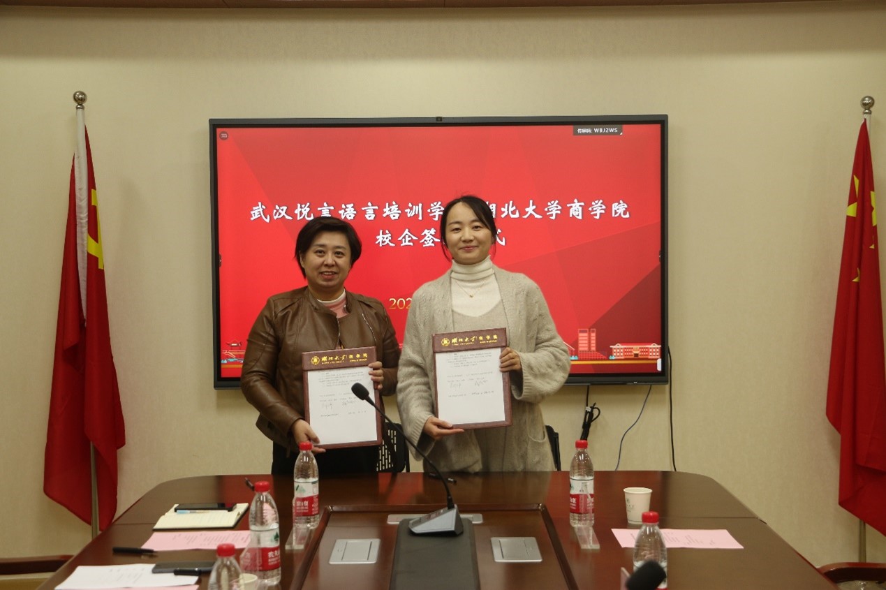 会后,双方正式签订校企合作协议,设立“悦言”教育发展基金,支持学生学业发展,助力学院学科建设。