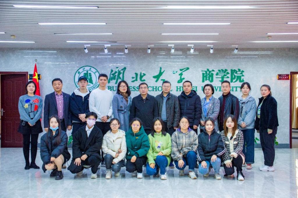 2021年11月25日上午,商学院召开以“唱响民族团结一家亲进步主旋律、争创全校民族团结示范院”为主题的“民族团结一家亲”结对子交流会。校统战部部长叶汉林、副部长王群、学工部副部长刘东、商学院党委书记刘明达、学院全体辅导员及“结对子”代表参与本次座谈会。商学院党委副书记邵阡主持会议。