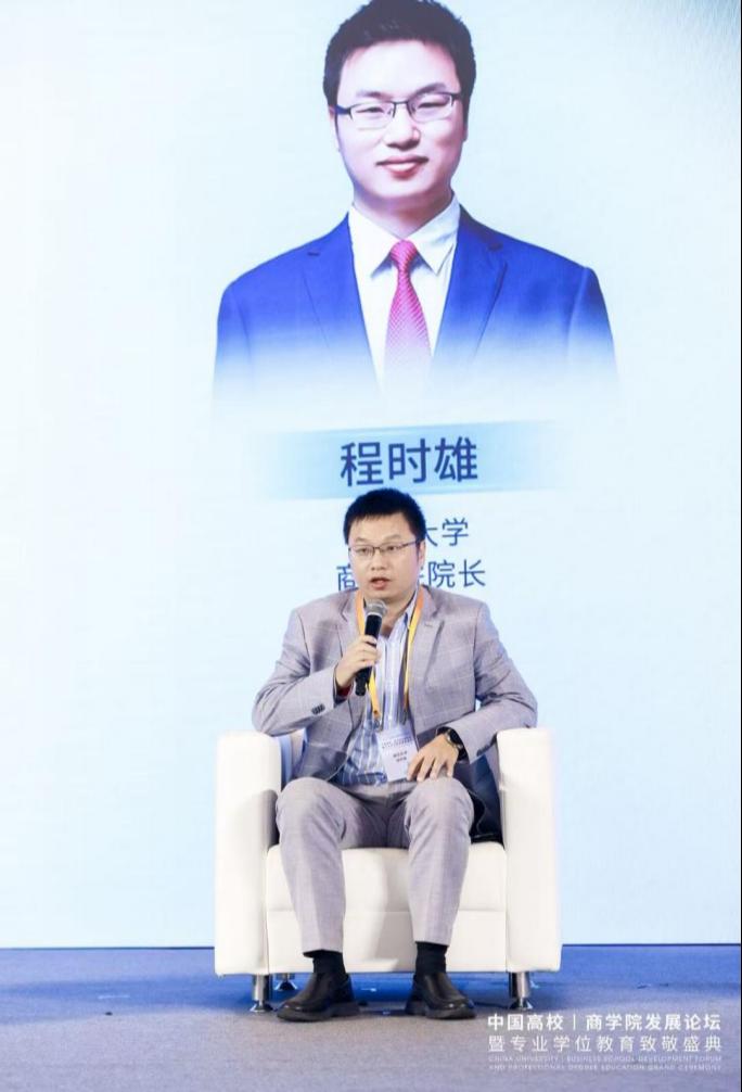 院长程时雄受邀参加行业对话活动,程院长针对AI与全球化变局下商学院课程设计的“不变”与“万变”问题,谈到学生进入商学院学习,对知识的渴望不变,对商科理论框架的学习动机不变。而要变的是高校教师要善于应用AI技术,提高学生的学习效率。同时,商科的教学要满足国家战略,就要学会自我变革,勇于打破商科与其他学科之间的壁垒,并推动商科与其他学科之间的交叉融合。程院长的精彩发言,引起与会者的共鸣与好评。