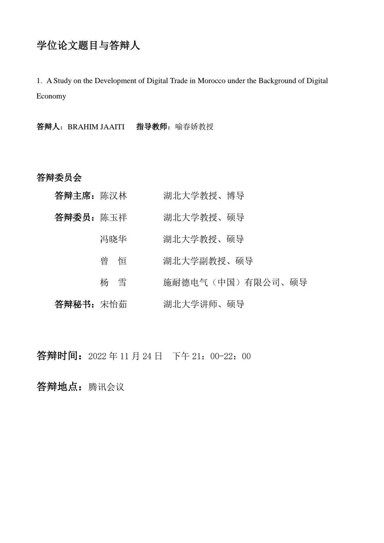 开云app登录入口2022届国际商务留学生硕士学位论文答辩公告