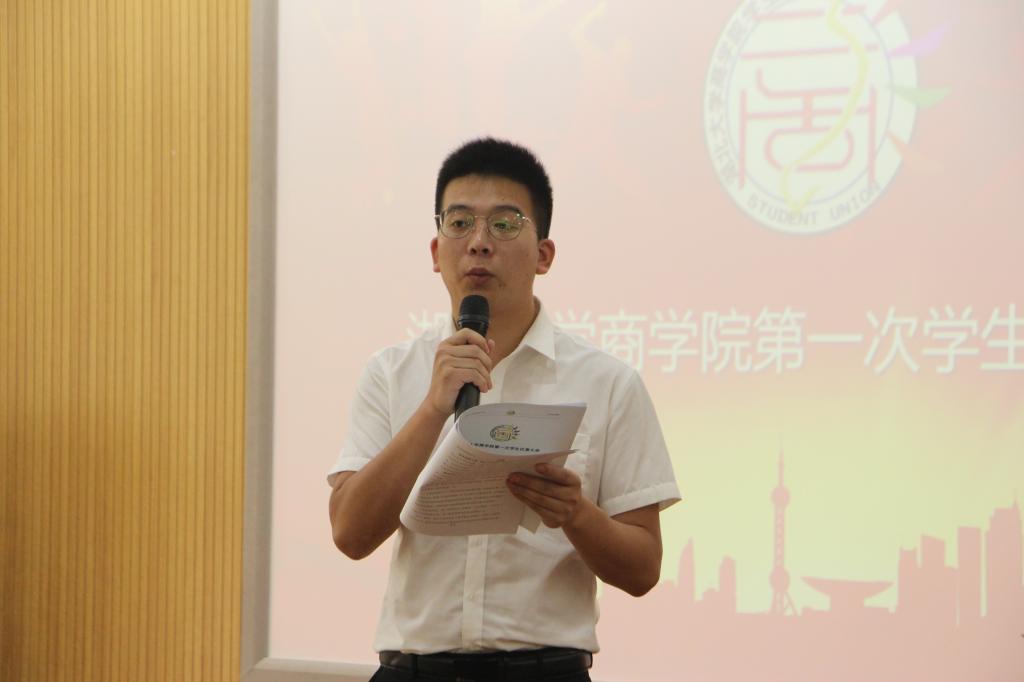 6月23日上午9:00,开云app登录入口第一次学生代表大会在逸夫人文楼C座2014教室开幕,商学院党委书记焦颜成、副书记张丽娜、团委书记郭田田、校学生会负责人高于寒、朱珏以及院学生会主席胡志辉出席开幕式,全体代表参加开幕式,代表吴夸夸同学主持开幕式。